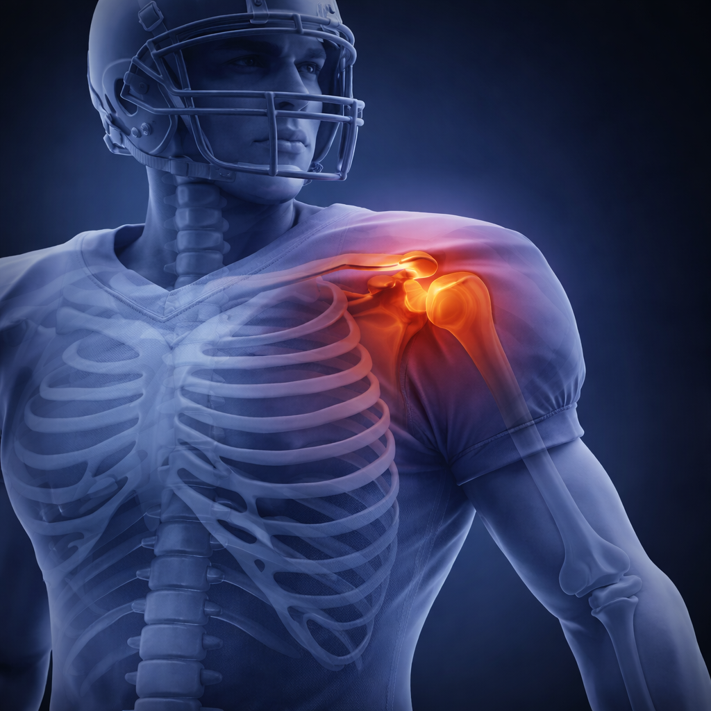 He comes off the field with sharp, pinpoint pain at the top of his shoulder and doesn’t return.