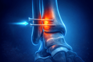 A syndesmosis injury happens when the two lower leg bones — the tibia and fibula — get pulled apart slightly due to an impact, torque, or misstep.